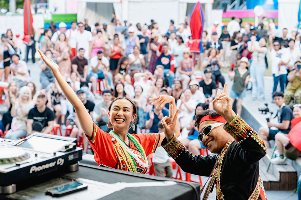 有別於前幾日的酷暑炙熱,昨天晚間巴黎氣候涼爽宜人,DJ汝妮的開場演出及戲曲新編2齣劇碼,讓大家看見臺灣傳統文化加入創新的一面。來自花蓮壽豐阿美族的汝妮與魯凱族的鼓手Lavulrase在「臺灣原住民族日」首場演出,也特地換上傳統服飾登台。