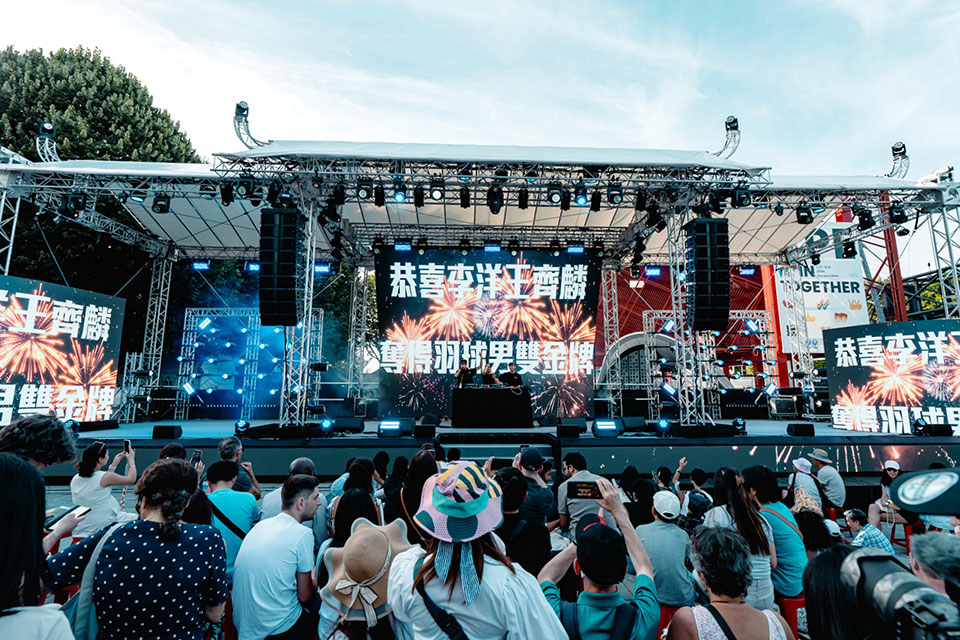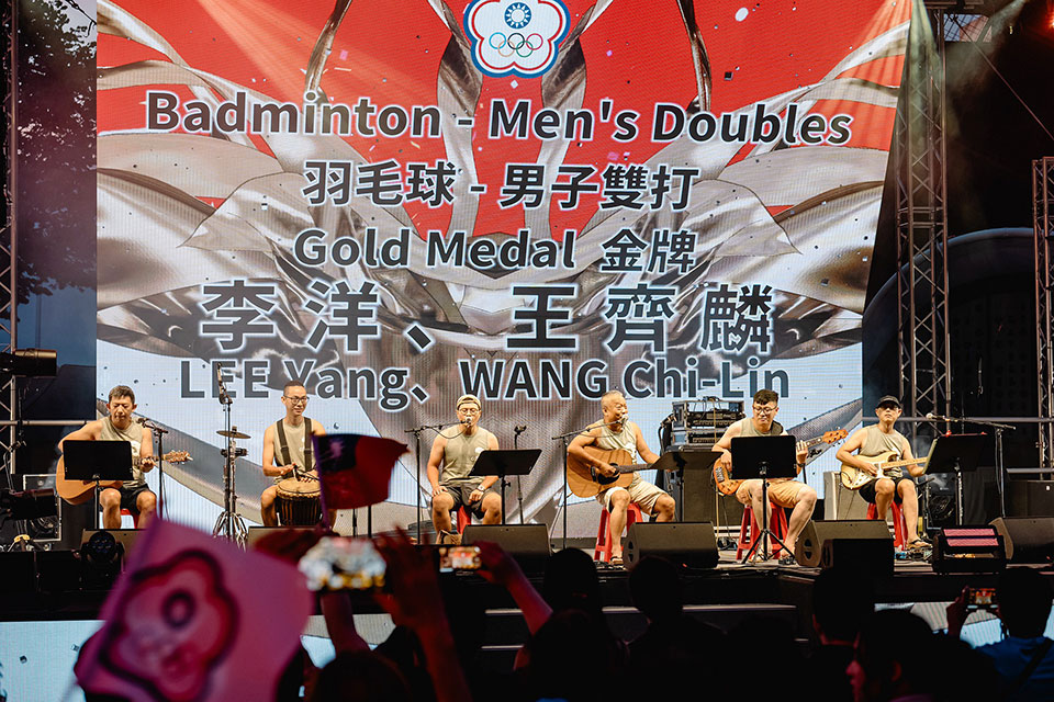 伴隨著巴黎奧運的文化奧運,在前(3)日李孟遠奪下男子定向飛靶、吳詩儀摘下女子60公斤級拳擊雙銅牌,昨日李洋、王齊麟的「麟洋配」獲得羽球男雙金牌時,特別推出「彩蛋」應援,大型螢幕上秀出精心設計的慶賀動畫及選手照片,現場觀眾高喊「Win Taiwan, Win Together」,慶祝臺灣選手得牌。尤其昨天「麟洋配」比賽時,正是文化奧運進場時間,在「麟洋配」奪牌時,「彩蛋」也及時出現螢幕上,文化奧運場上全場沸騰,不分國籍觀眾紛紛與螢幕合影,記錄臺灣在奧運場上的重要時刻。擔任壓軸的「麵包車樂團」,也特別加碼安可曲「國旗歌」,帶動現場觀眾齊唱,熱血歡騰。