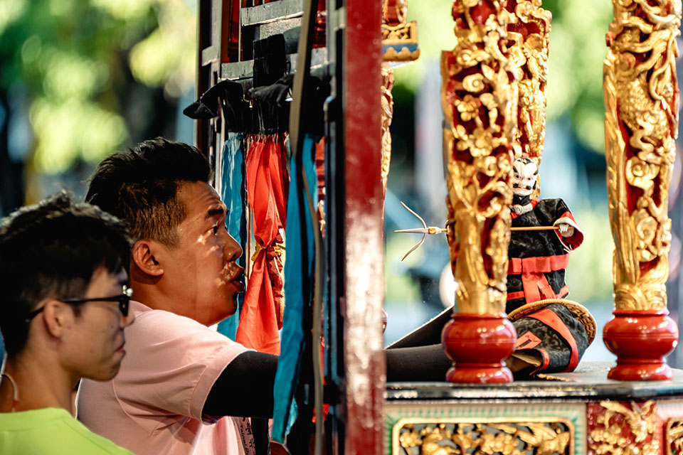 從文化奧運開幕後,就不時有觀眾敲碗詢問「這次演出有布袋戲嗎?」臺北木偶劇團昨天登場,為了突破語言及時間的限制,臺北木偶劇團特別減少語言的部分,運用更多的操偶動作,融合臺灣北管特色音樂、廟會文化等,讓觀眾更專注於劇情的發展。偶師吳聲杰說,相較於過去受邀到國外演出,這次「文化奧運是臺灣自己的主場」,所以整場表演除了劇名是「福爾摩沙臺灣」,口白中不時喊出的臺灣,連劇情都描繪出西邊「惡龍」想併吞隔著海峽的東邊美麗島嶼,島民極力抵抗惡龍入侵的故事。