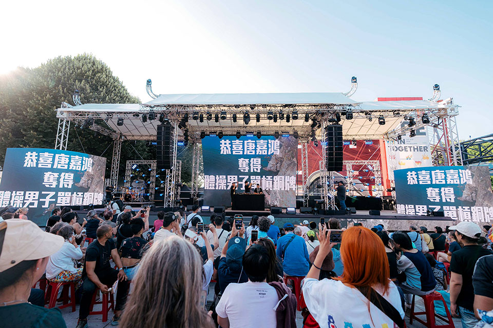接連前2日奧運選手奪牌的喜訊,「亞洲貓王」唐嘉鴻也在昨(5)日文化奧運開場前獲得體操單槓銅牌,除了全場的「彩蛋」依舊,擔任開場演出的「混種亞人」也先帶動全場高喊「Win Together」炒熱氣氛;壓軸的「跑跑機器人」在演出一開始也先高喊「臺灣NO.1」,引起台下熱情回應。