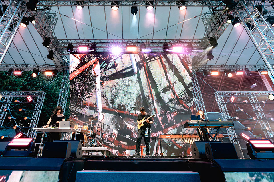 壓軸為首次登台的「跑跑機器人」,是由電吉他、鋼琴、模組合成器與打擊等組成的實驗性當代獨立樂團。開場就自豪介紹「我們是高雄人,水啦!」的「跑跑機器人」,在演出中特別融入高雄的文化地景,希望讓世界看見故鄉高雄的美。磅礴震撼的節奏裡,畫面伴隨的船舶、工業及新興高樓,讓大家看見港都近年躍升國際頂尖都會城市的企圖;溫和悠緩的音樂聲搭配臺灣獨有的騎樓黑白切,以及摩托車川流來去的常民生活,則溫柔的敘述著工業城市也仍保有單純的生活面向。