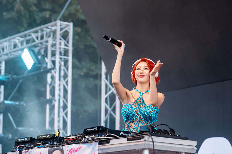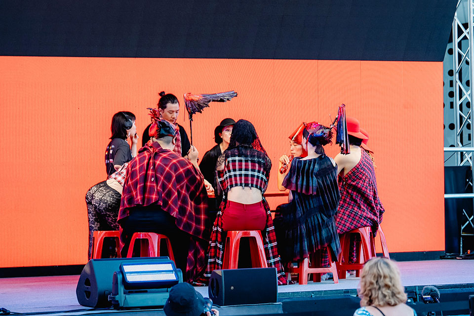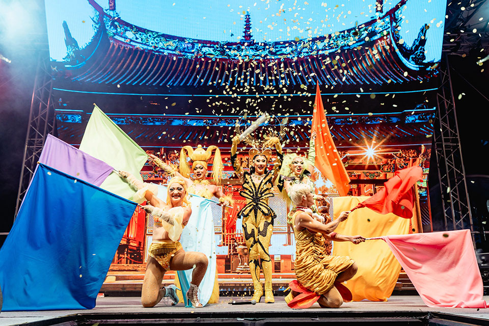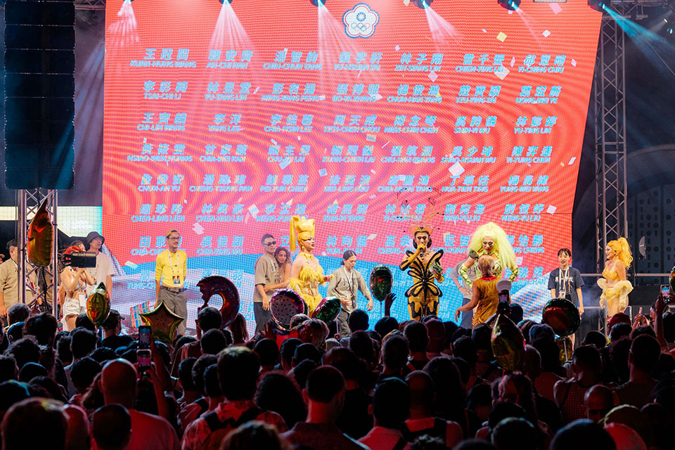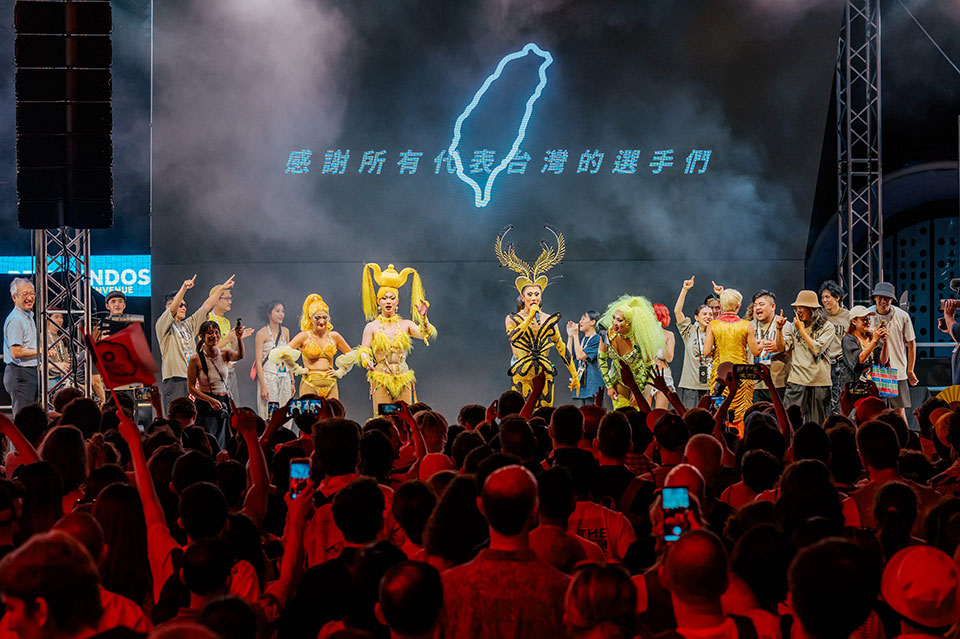昨晚的閉幕演出,相信是文化奧運臺灣館最「臺」的一晚,DJ妖嬌、小事製作以「辣臺妹」電子花車女郎及臺式辦桌,完美應合臺灣館電子花車舞台及廟埕辦桌現場。而妮妃雅與瘋家的壓軸演出,完整呈現臺灣風土、文化的視覺及音樂,加上變裝皇后精心搭配的媽祖、蝴蝶、臺灣小吃穿上身等服裝,依然讓現場擠進文化奧運15天最多的人潮及不停歇的尖叫歡呼聲。